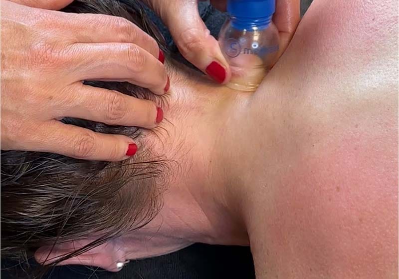 Cupping is een krachtige techniek waarbij we vacuüm cups op de huid zetten. In plaats van druk te geven zoals bij klassieke massage, trekken we het bindweefsel los. Daardoor stroomt het bloed beter, raken verklevingen los en voel je vaak direct verschil.